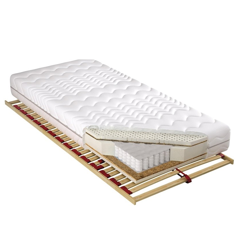 - склад матрацу: з'ємний чохол aloe vera, кліматизаційне волокно, латексна плита, кокосова плита, блок незалежних пружин TFK ;