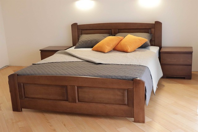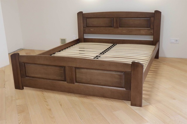Розміри: Ширина: 187 см Довжина: 207 см Висота узголів'я/узніжжя: 92см./50 см Висота від підлоги до спального місця: 26,5 см Спальна частина: 180/200 см  Матеріал: масив буку Широка гамма кольорів Вага ліжка: 65-80 кг. Дерев’яні (букові) ортопедичні ламелі під матрац: ширина -5,3 см., між ламелями - 4 см Читати більше