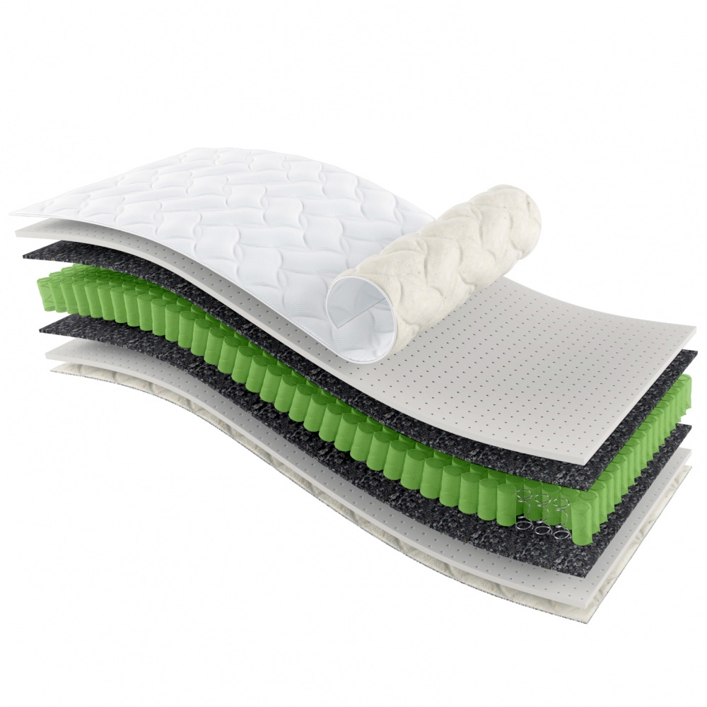 Матрас изготовлен на основе уникального пружинного блока IQ Spring, особенностью пружин которого является их форма: узкая средняя часть и широкие основания, так называемая форма «песочных часов». Такая форма пружин позволяет сконцентрировать в одном матрасе несколько уровней жесткости – от первоначальной мягкости до последующего увеличения жесткости, что обеспечивает непревзойденный комфорт и оптимальную поддержку позвоночника. Между пружинным блоком IQ Spring и мягкими внутренними слоями матраса Sleep and Fly Organic Alfa расположен материал Eco Felt. Он применяется с целью защиты внутреннего наполнения матраса от пружинного блока, за счет чего значительно повышаются эксплуатационные свойства и износоустойчивость матраса. Материал Eco Felt является абсолютно натуральным и содержит в себе хлопковые и льняные волокна.